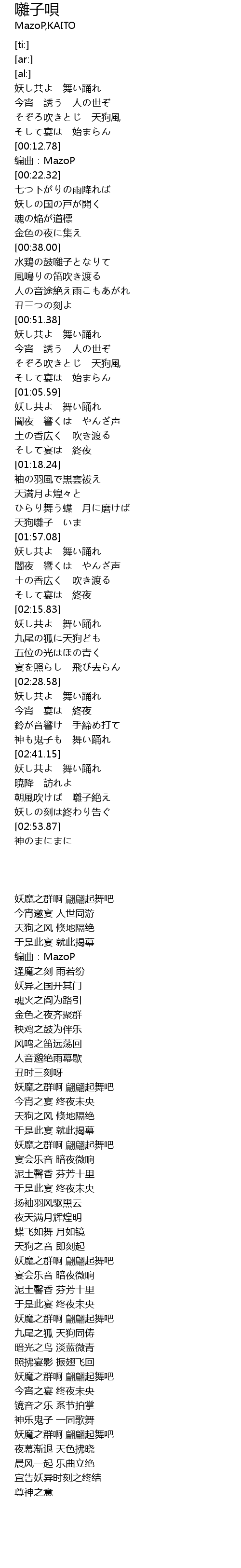 | [02:41.68] | 妖し共よ 舞い踊れ |