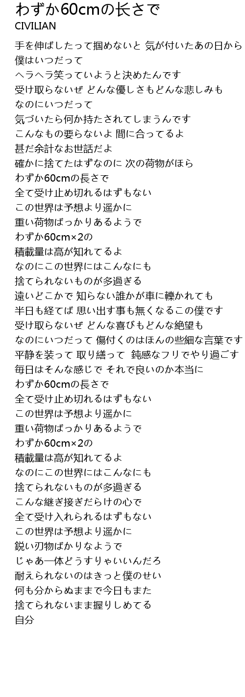 | [03:27.44] | わずか60cm×2の |