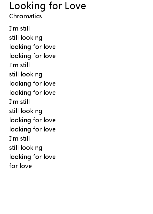 | [01:23] | looking for love |