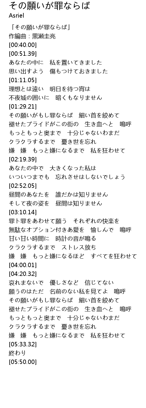 | [00:00.00] | 「その願いが罪ならば」 |