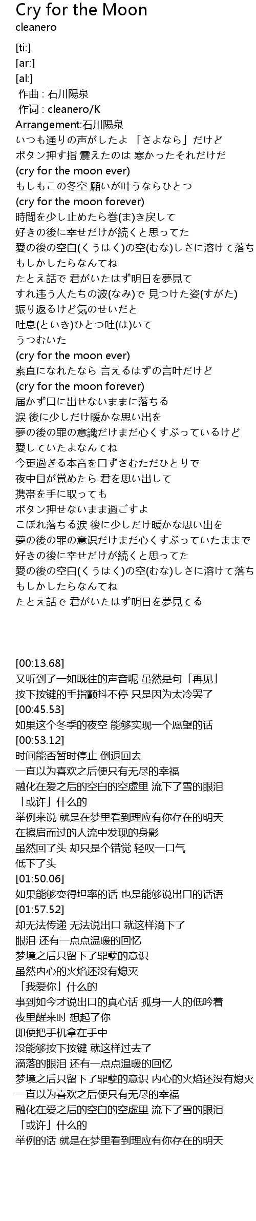 | [00:45.53] | (cry for the moon ever) |