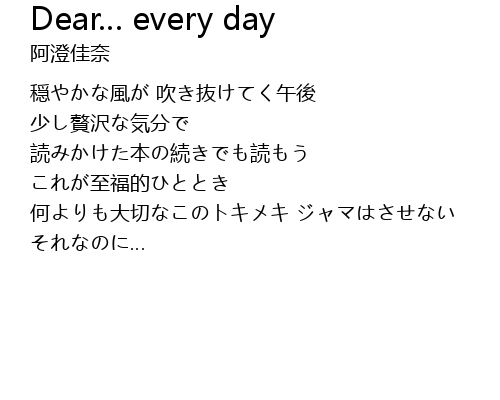 | [00:11.670] | 穏やかな風が 吹き抜けてく午後 |