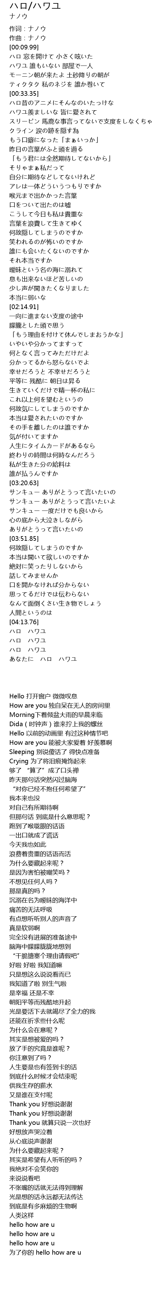 | [00:16.24] | ハワユ 誰もいない 部屋で一人 |