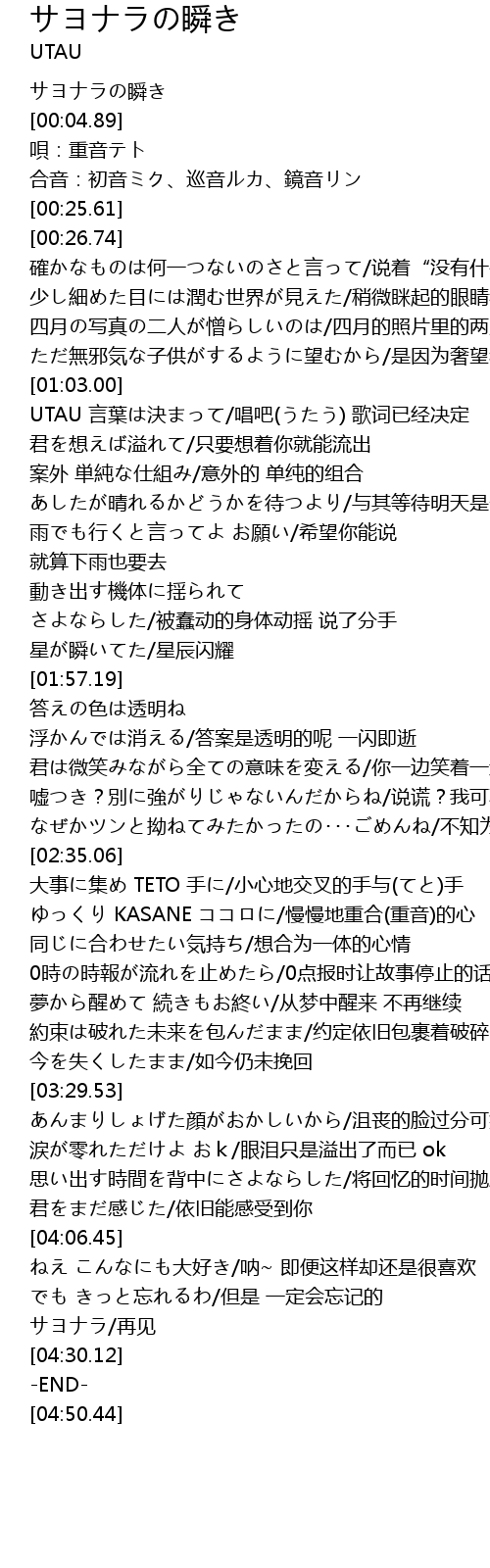 | [02:40.78] | ゆっくり KASANE ココロに/慢慢地重合(重音)的心 |
