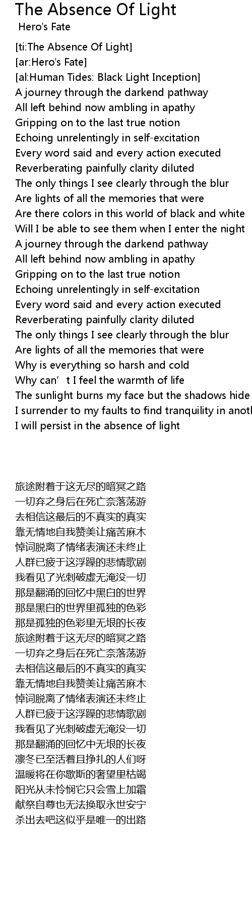 | [ti:The Absence Of Light] | |