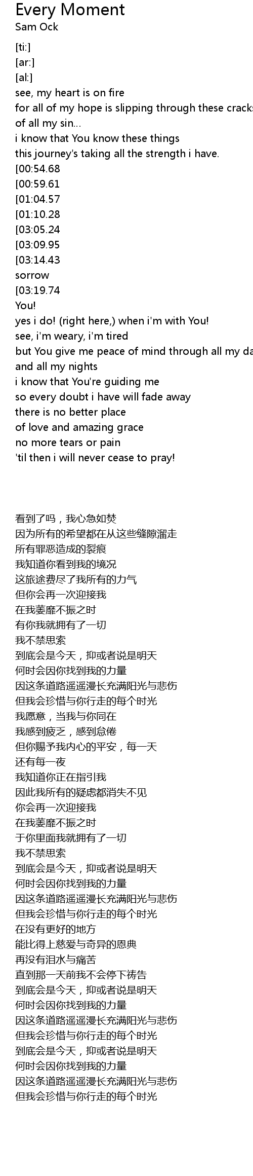 | [03:00.81] | 'til then i will never cease to pray! |