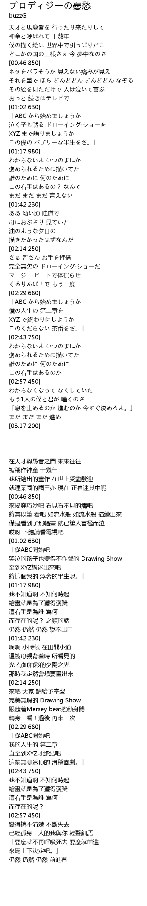 | [00:31.610] | 神童と呼ばれて 十数年 |