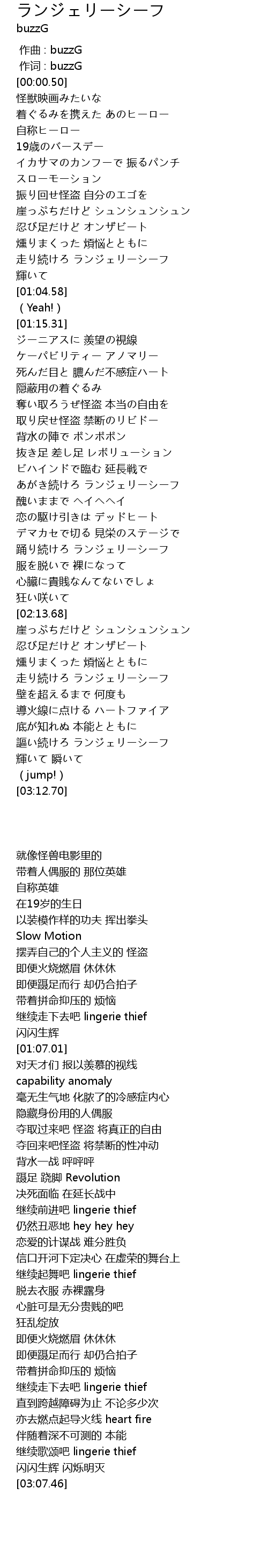 | [01:56.08] | 踊り続けろ ランジェリーシーフ |