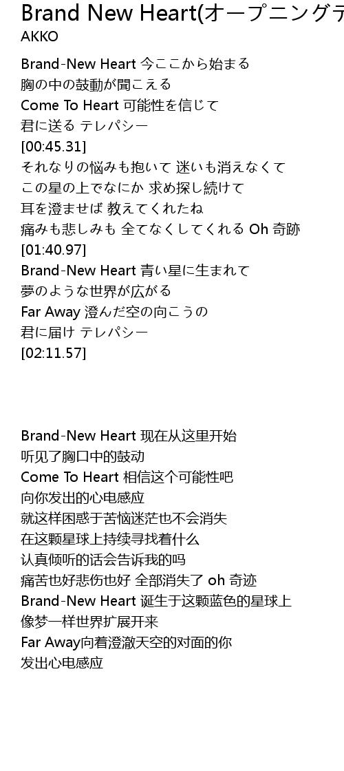| [00:16.30] | Brand-New Heart 今ここから始まる |