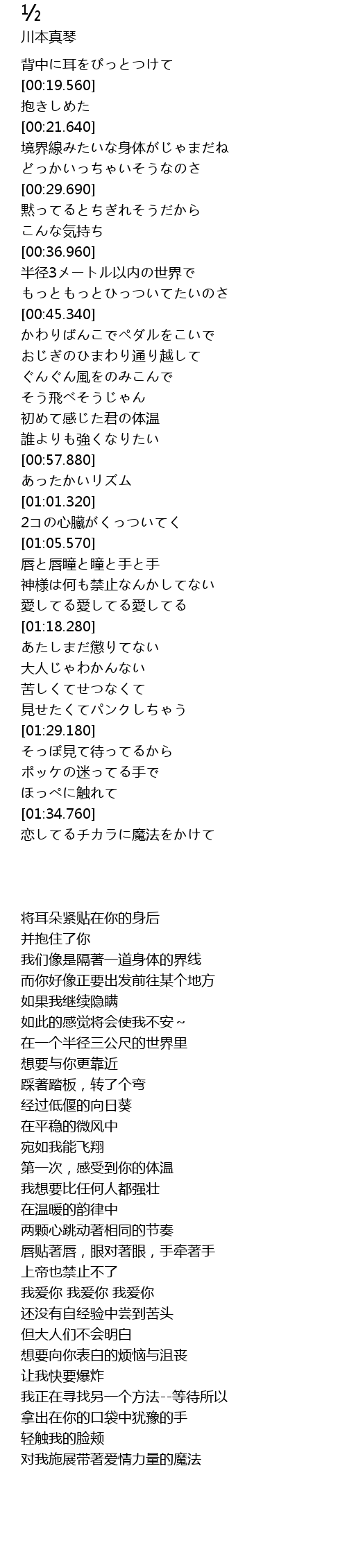 | [00:23.280] | 境界線みたいな身体がじゃまだね |