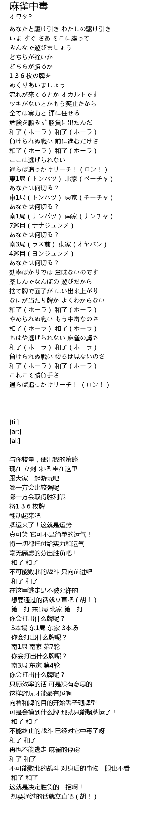 | [02:58.35] | もはや逃げられない 麻雀の虜さ |