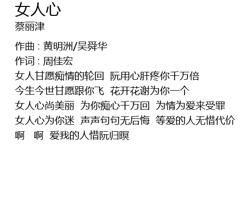 | 女人心为你迷 声声句句无后悔 等爱的人无惜代价 | |