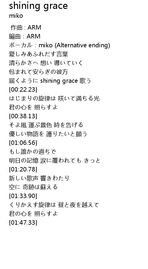 | [00:00.28] | ボーカル:miko (Alternative ending) |
