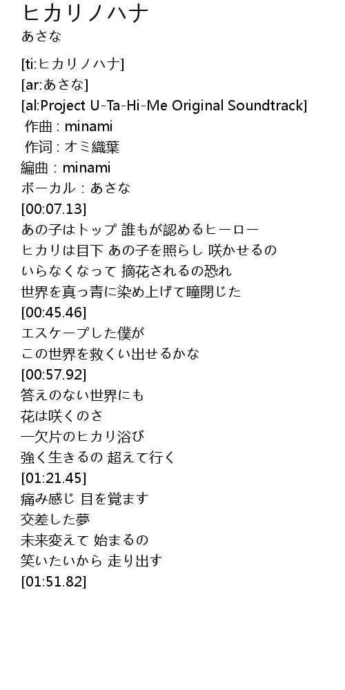 | [ti:ヒカリノハナ] | |