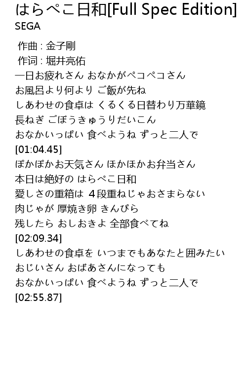 | [01:34.02] | 本日は絶好の はらぺこ日和 |