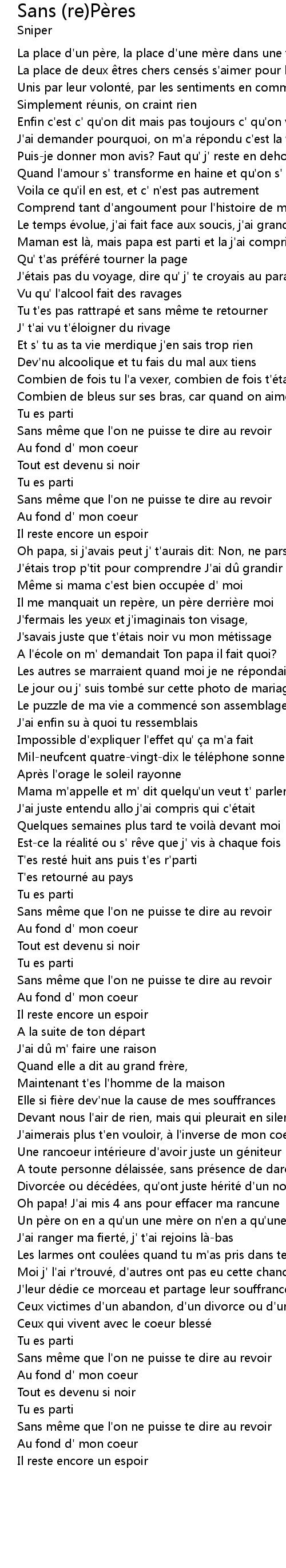 | Song | Sans (re)Pères |