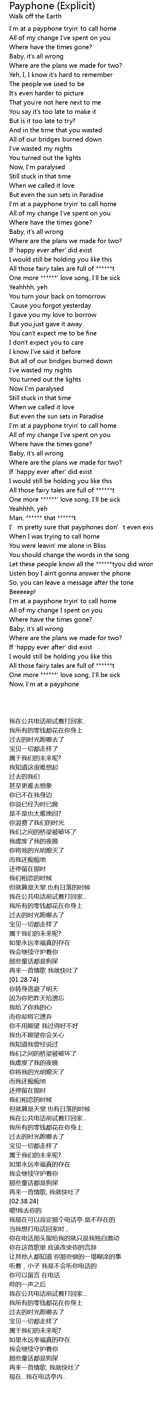 | Song | Payphone (Explicit) |