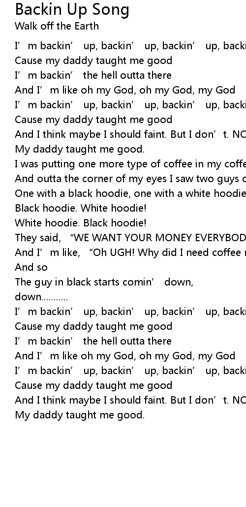 | I’m backin’ up, backin’ up, backin’ up, backin’ up | |