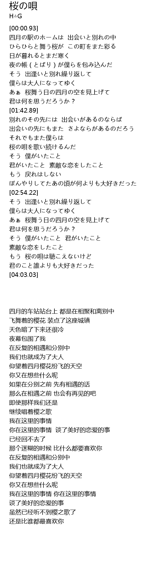 | [03:47.55] | もう 桜の唄は聴こえないけど |
