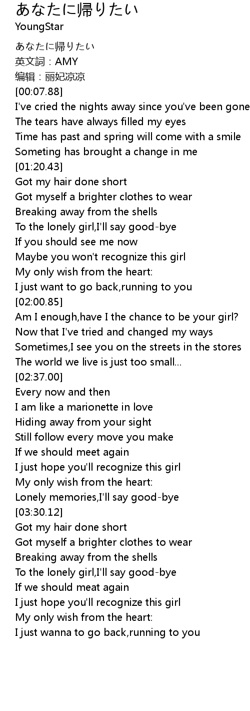 | [02:05.00] | Am I enough,have I the chance to be your girl? |