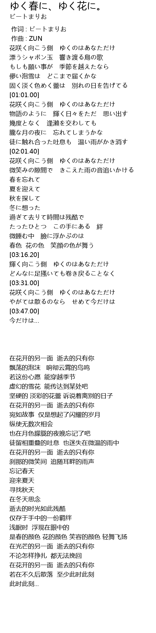 | [03:31.16] | 花咲く向こう側 ゆくのはあなただけ |