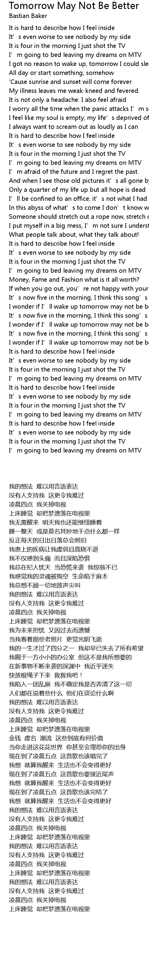 | [01:48.40] | I wonder if I’ll wake up tomorrow may not be better. |
