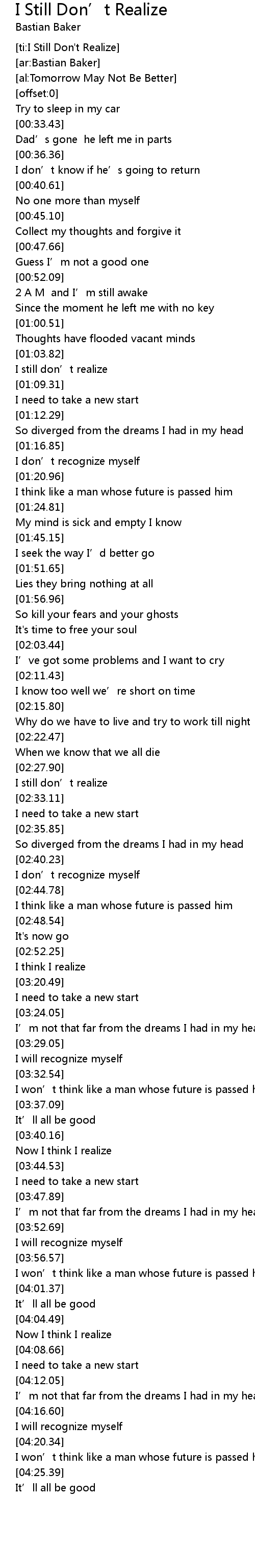 | [04:13.41] | I' m not that far from the dreams I had in my head |