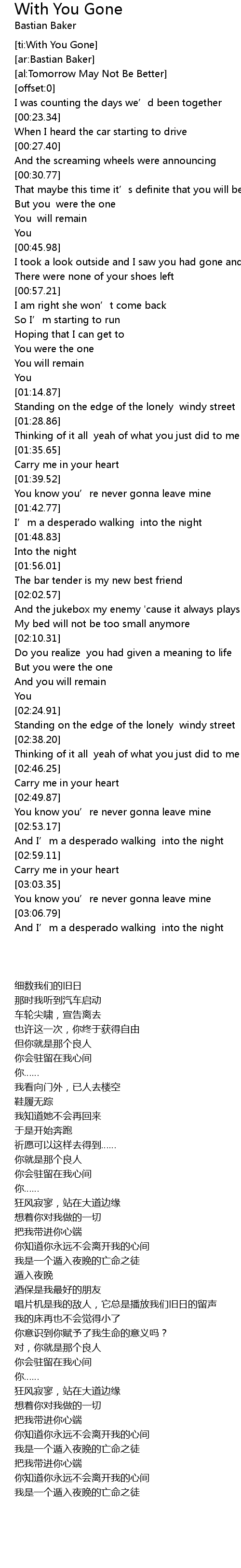 | [00:48.79] | I took a look outside and I saw you had gone and in the empty hall |