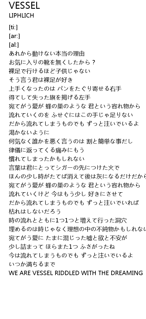 | [03:35.43] | WE ARE VESSEL RIDDLED WITH THE DREAMING |