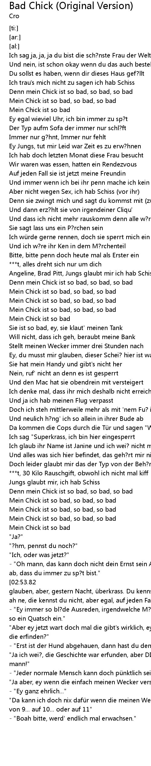 | [02:36.33] | Mein Chick ist so bad, so bad, so bad |