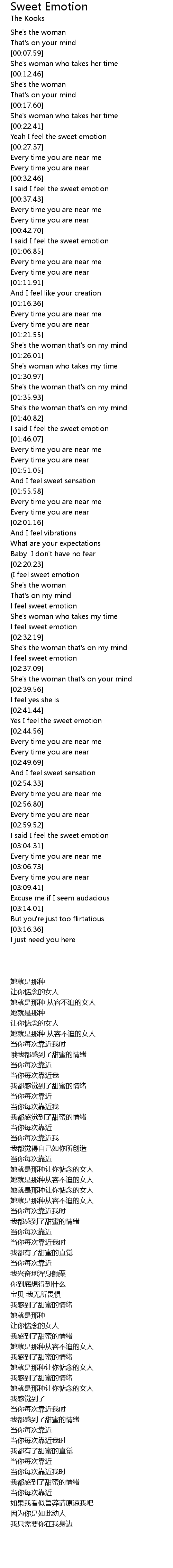| [02:34.89] | I feel sweet emotion |