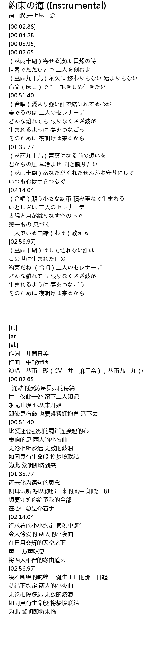| [03:23.15] | 約束だね (合唱)二人のセレナーデ |