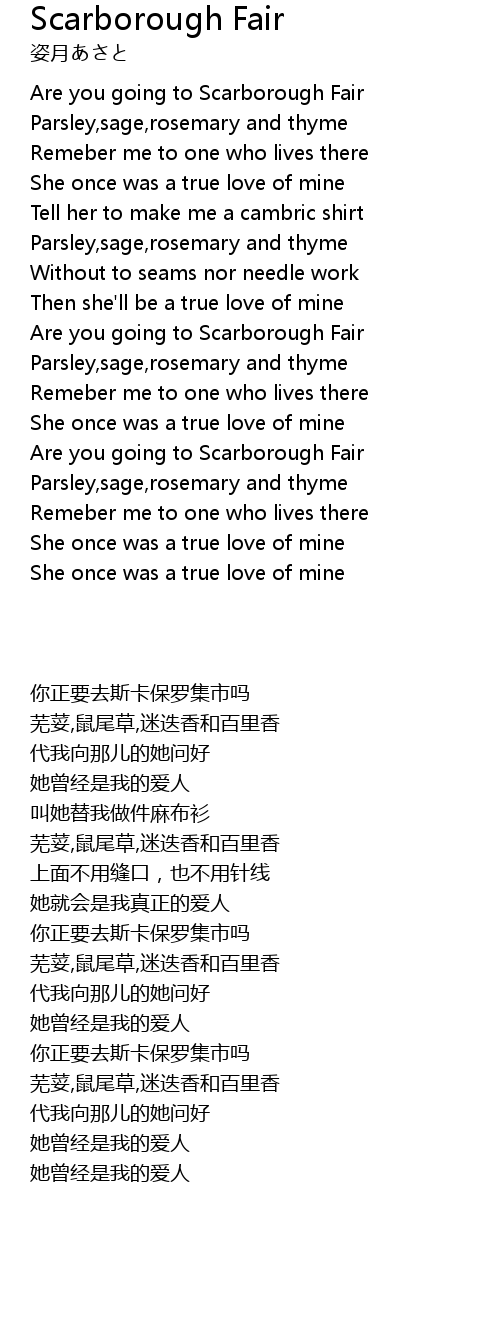 | [00:16.69] | Are you going to Scarborough Fair |