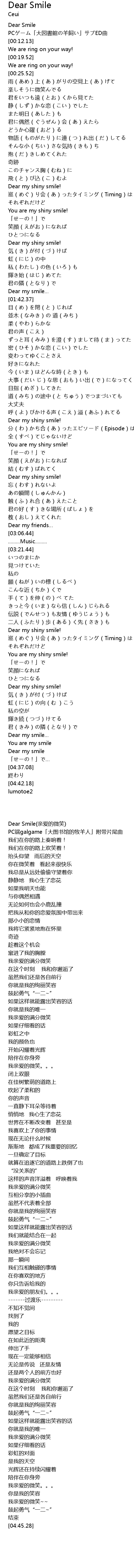 | [00:00.13] | Dear Smile |