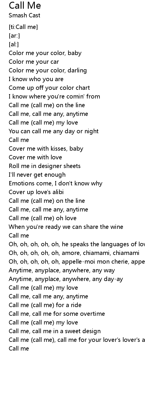 Oh, oh, oh, oh, oh, appelle-moi mon cherie, appelle-moi |