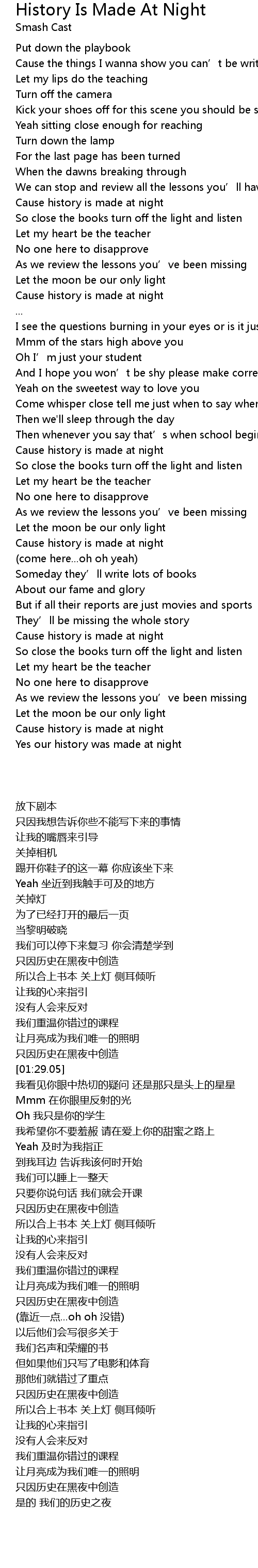 | [00:52.32] | Cause history is made at night |
