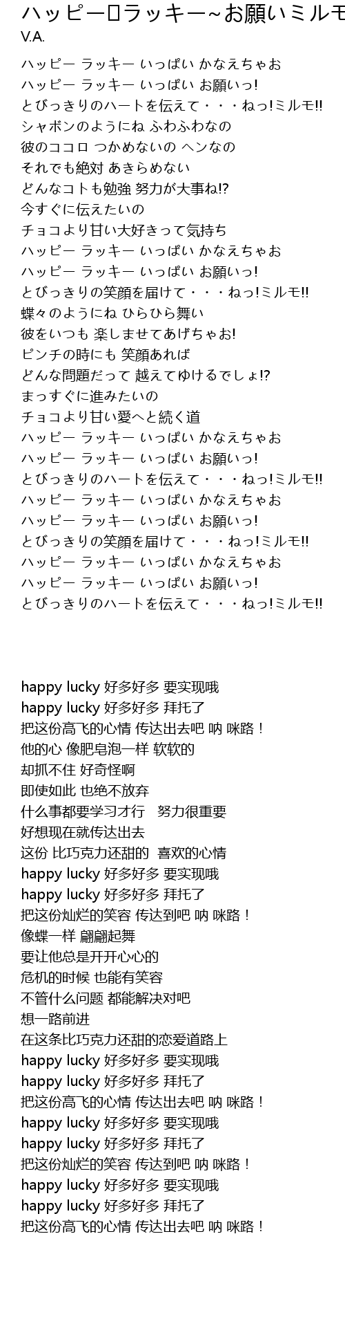 | [02:19.400] | ハッピー ラッキー いっぱい お願いっ! |