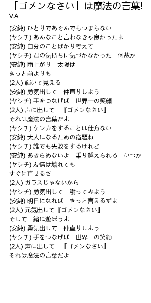 | Song | 「ゴメンなさい」は魔法の言葉! |