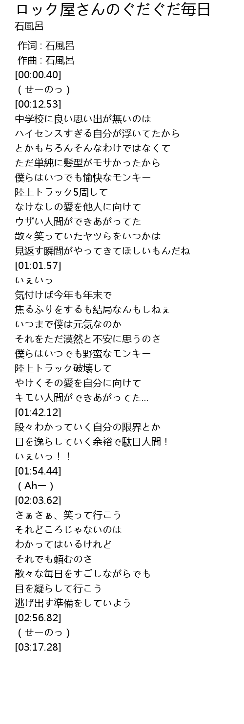 | [00:00.000] | 作词 : 石風呂 |