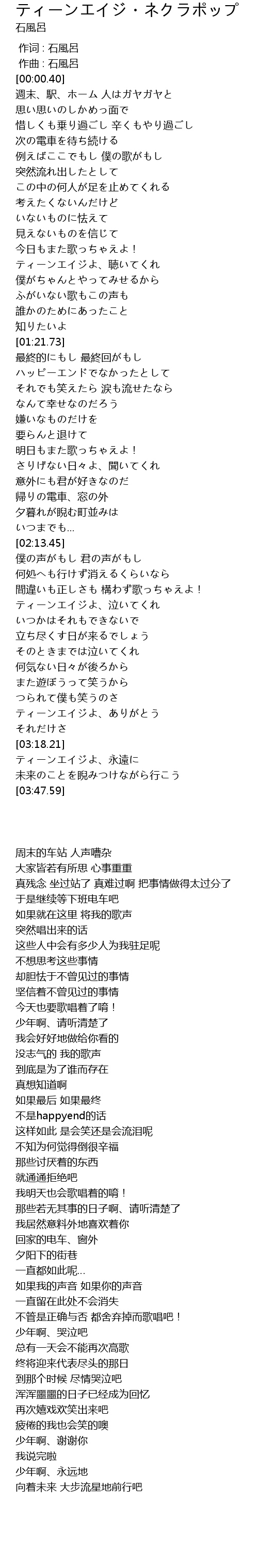 | [00:00.000] | 作词 : 石風呂 |