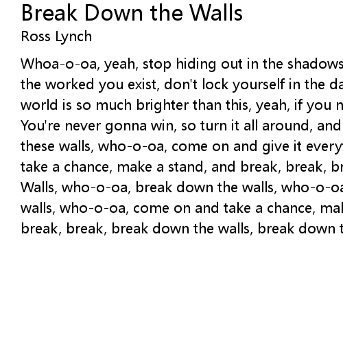 Walls, who-o-oa, break down the walls, who-o-oa, break down the |