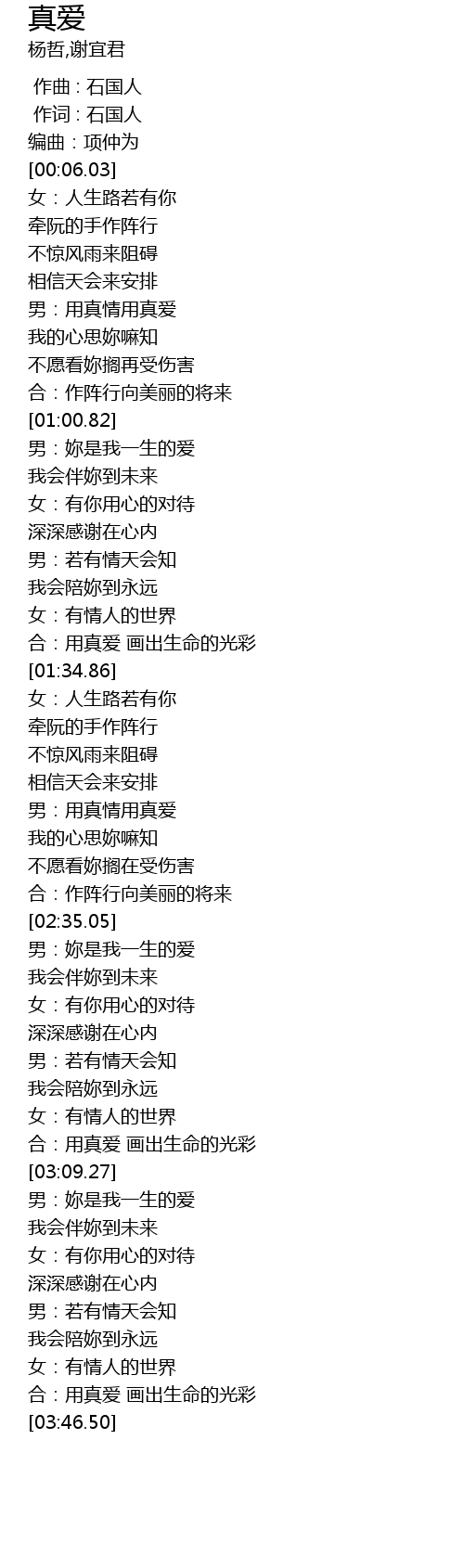 | [02:13.63] | 男:用真情用真爱 |