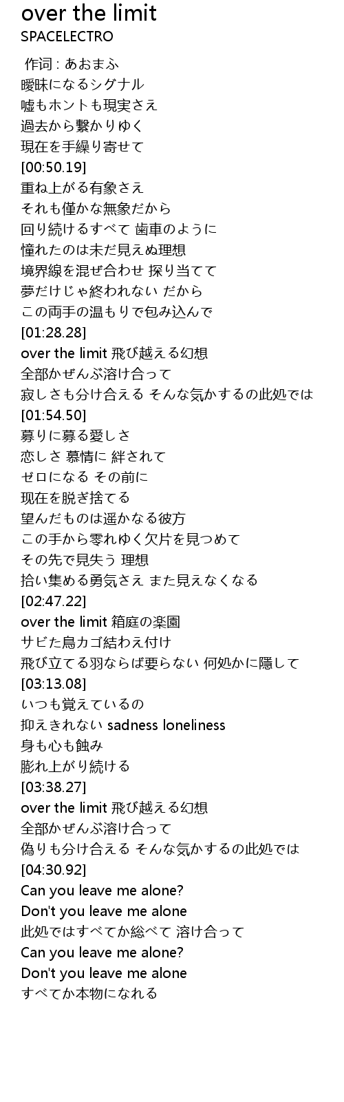 | [04:06.52] | over the limit 飛び越える幻想 |