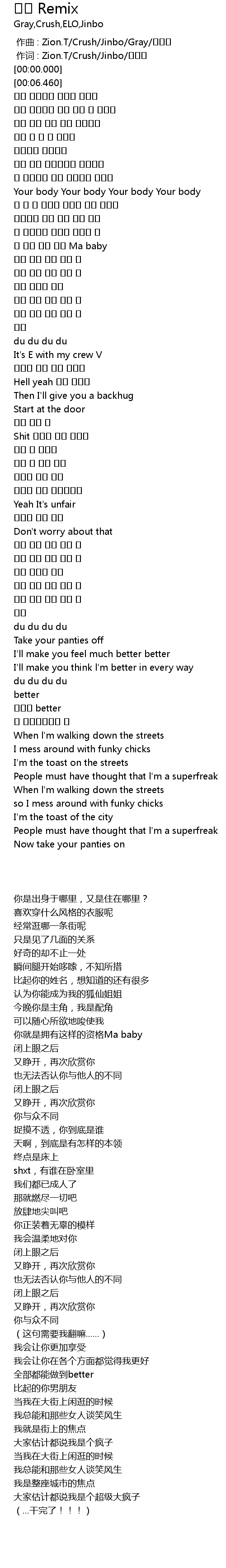 | [00:00.00] | zuo qu : Zion. T Crush Jinbo Gray |