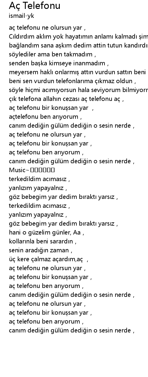 | [01:05.50] | aç telefonu bir konuşsan yar , |