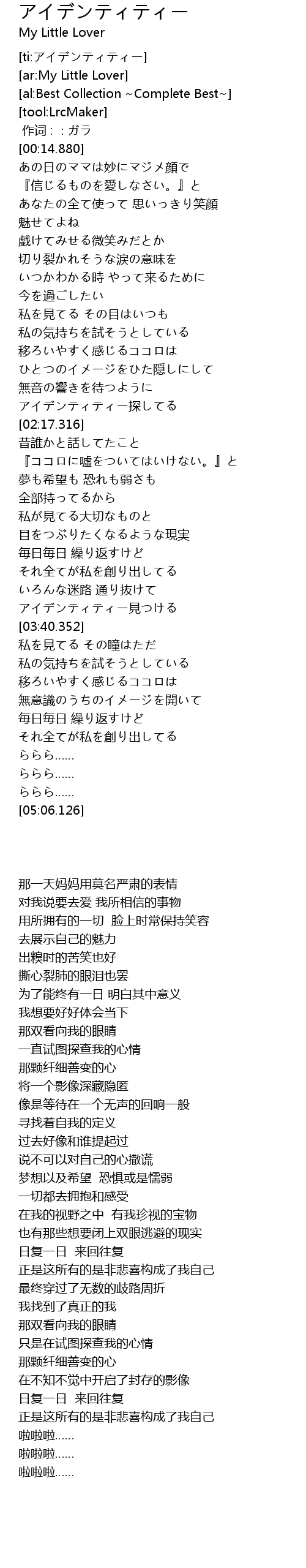 | [02:10.596] | アイデンティティー探してる |