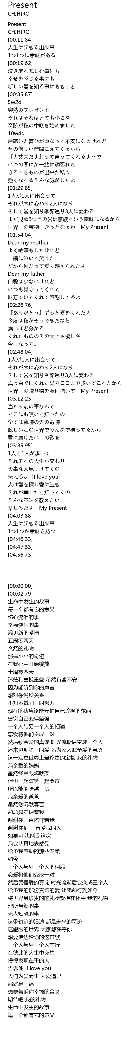 | [01:47.06] | 世界一の宝物にきっとなるね My Present |