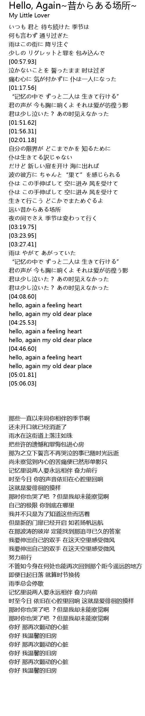| [04:32.41] | hello, again a feeling heart |
