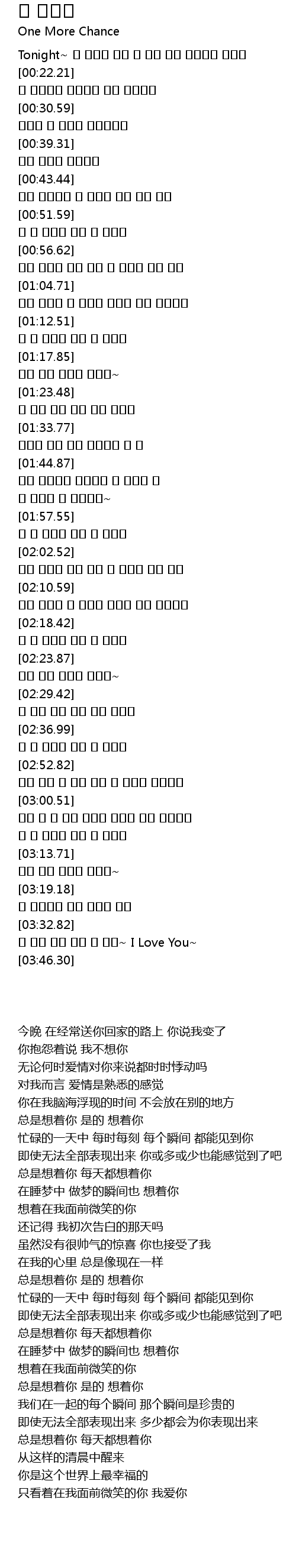 | [03:37.04] | 내 앞에 웃는 그런 널 보며~ I Love You~ |