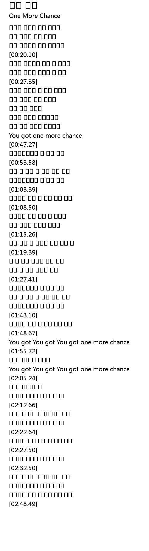 | [01:59.73] | You got You got You got one more chance |